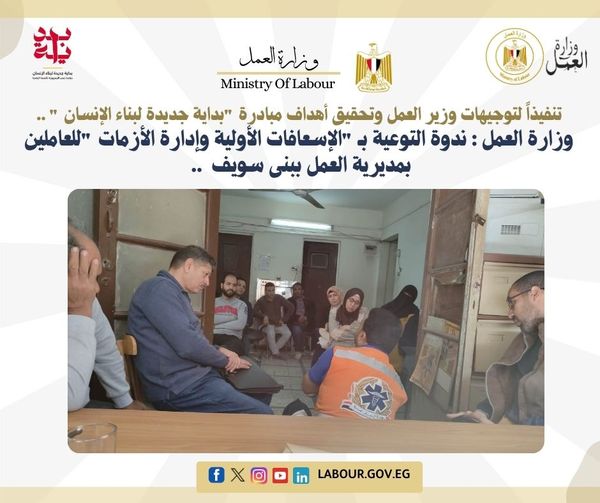 وزارة العمل تنظم ندوة التوعية بـ "الإسعافات الأولية وإدارة الأزمات" ببني سويف