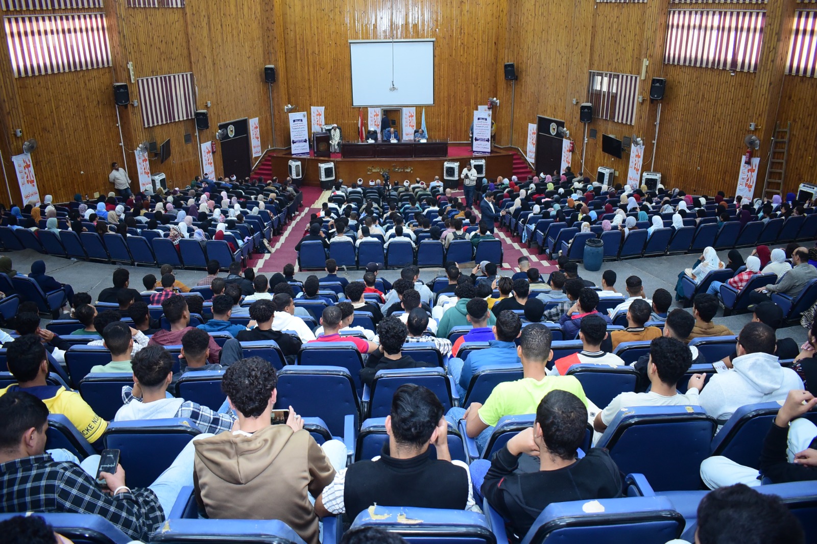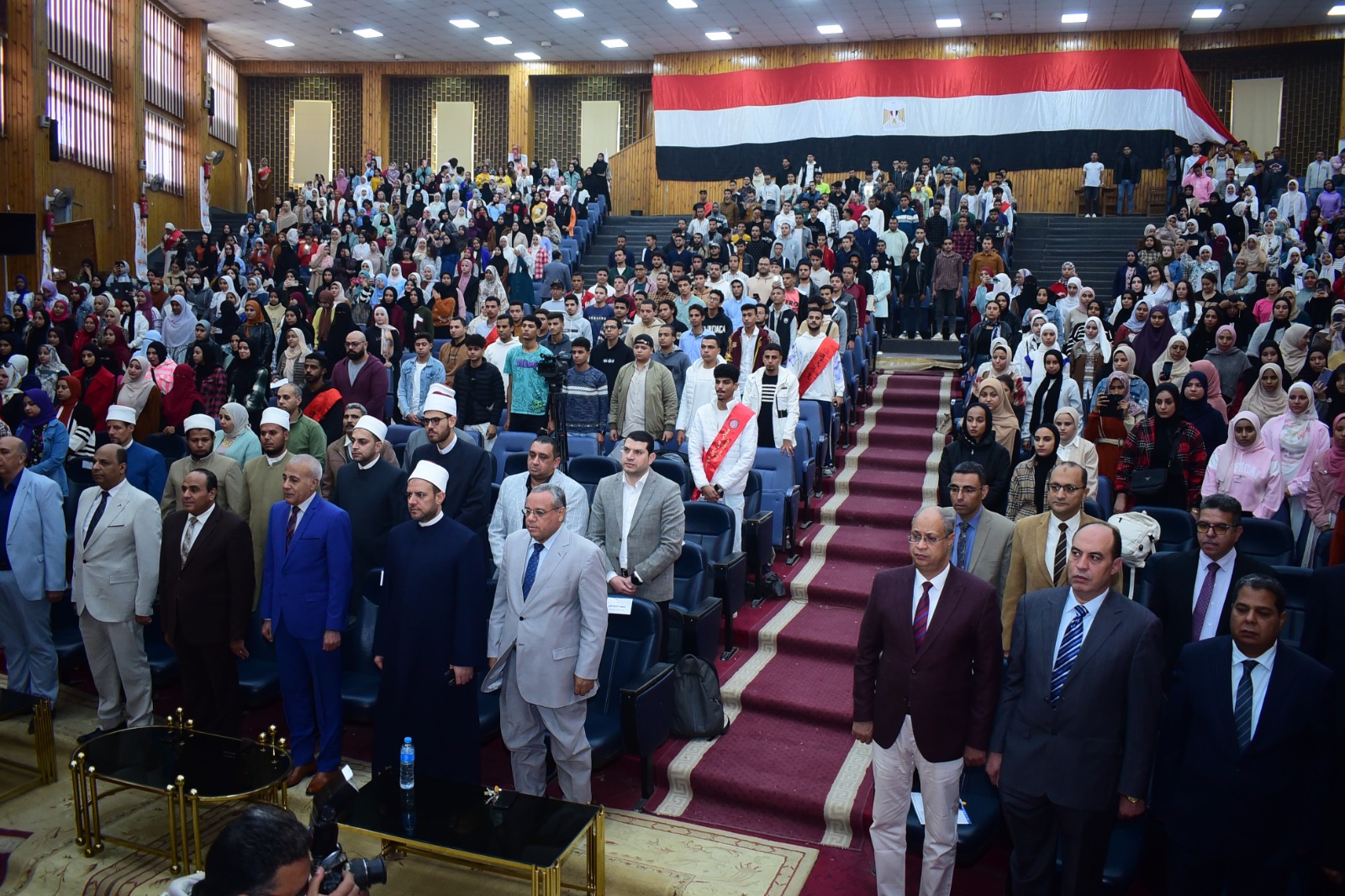 بحضور الدكتور عبدالناصر يس نائب رئيس الجامعة لشئون التعليم والطلاب، الدكتور خالد عمران نائب رئيس الجامعة لشئون خدمة المجتمع وتنمية البيئة، والدكتور حسن إبراهيم الأمين المساعد لمجلس شئون الدعوة الإسلامية، ونخبة من علماء الأزهر الشريف، وعمداء الكليات ووكلائهم، وأعضاء هيئة التدريس والعاملين والطلاب بالجامعة.