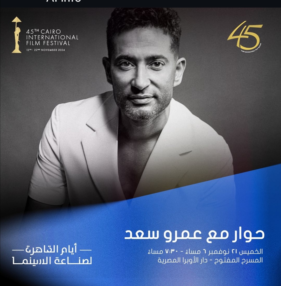 يستضيف مهرجان القاهرة السينمائي الدولي في دورته 45 الفنان عمرو سعد في جلسة نقاشية على هامش فعاليات أيام القاهرة لصناعة السينما.