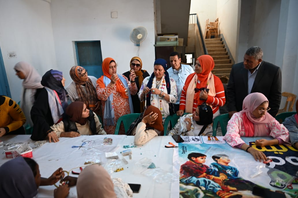 وتواصلت الفعاليات المقامة مع الورش الحرفية، بحضور كل من د. حنان موسى، رئيس الإدارة المركزية للدراسات والبحوث ورئيس اللجنة التنفيذية لمشروع أهل مصر (فتيات)، وماهر كامل، مدير قصر ثقافة موط، ومها رشدي منسق الفعاليات بالإدارة العامة لثقافة المرأة.