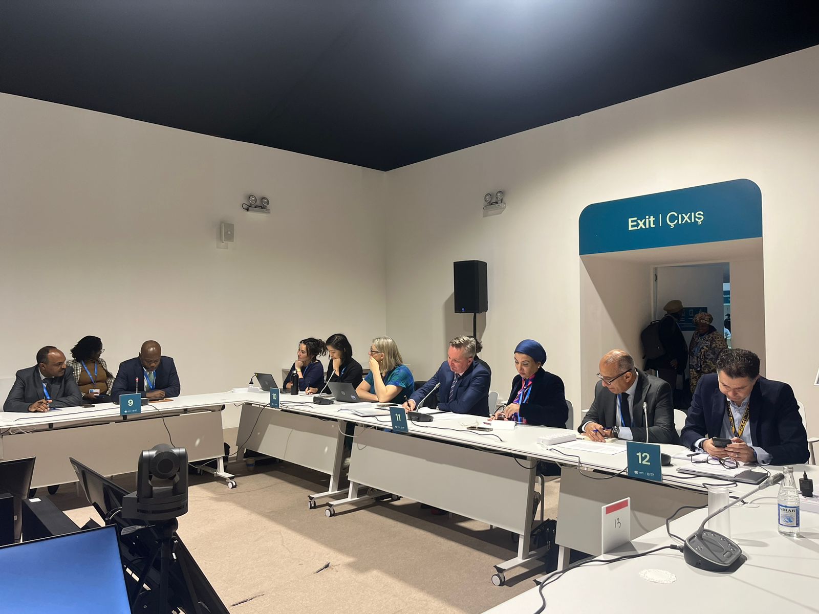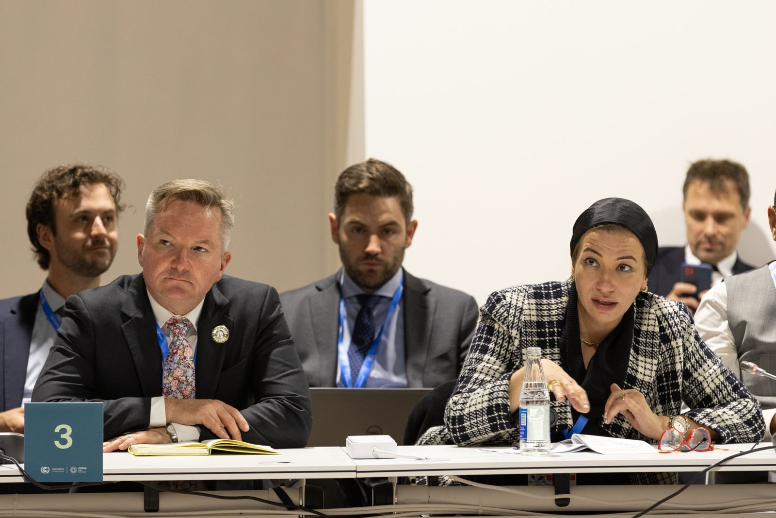 قادت الدكتورة ياسمين فؤاد وزيرة البيئة مع نظيرها الأسترالي  كريس بوين، على مدار يومين متواصلين، تسيير مفاوضات الهدف الكمي الجمعي الجديد لتمويل المناخ، من خلال عقد مجموعة من اللقاءات مع ممثلي المجموعات والوفود المختلفة.