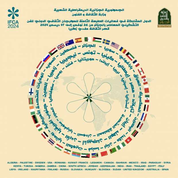 تحتضن العاصمة الجزائرية من 26 نوفمبر الجاري حتى 7 ديسمبر المقبل، الدورة الثامنة من المهرجان الثقافي الدولي للفن التشكيلي المعاصر، بمشاركة 39 دولة و70 ضيفًا من مختلف أنحاء العالم.