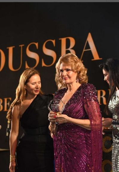 بفستان لافت يسرا تحتفل بجائزة جولدن جلوب