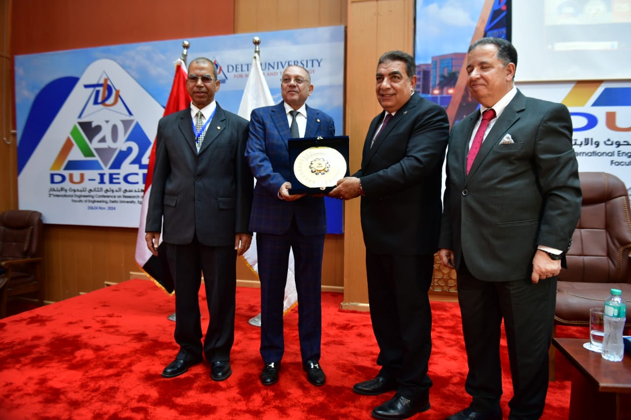 وكان فى استقباله الدكتور محمد ربيع رئيس مجلس أمناء جامعة الدلتا، والدكتور يحيى المشد رئيس الجامعة،والدكتور سيد ابو السعود عميد كلية الهندسة، وعدد من الوزراء السابقين ،وعمداء وأساتذة الجامعات والباحثين من الكليات المختلفة.