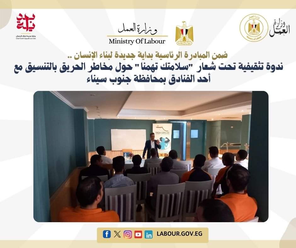وزارة العمل تنظم ندوة تثقيفية تحت شعار "سلامتك تهمنا" بجنوب سيناء
