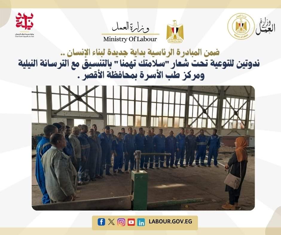 وزارة العمل تنظم ندوتين للتوعية تحت شعار "سلامتك تهمنا" بالأقصر