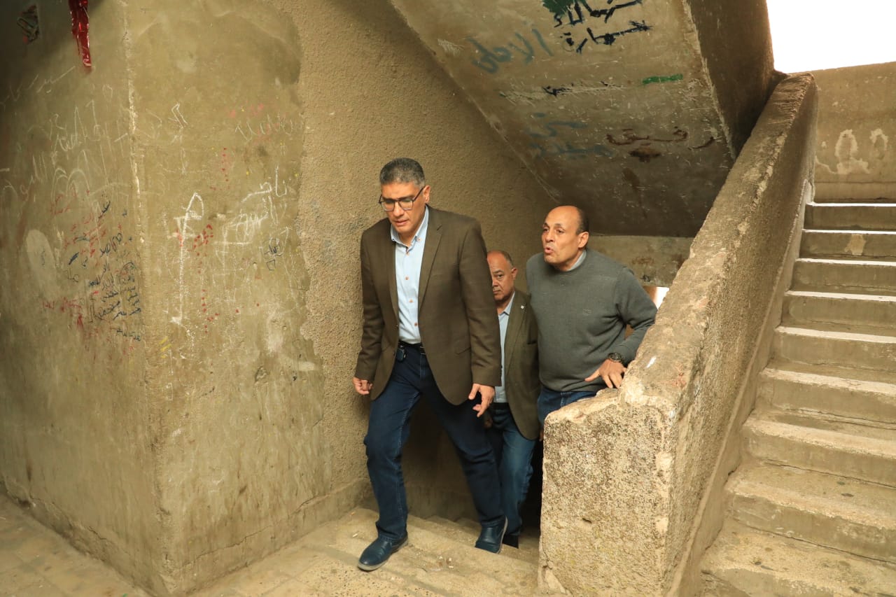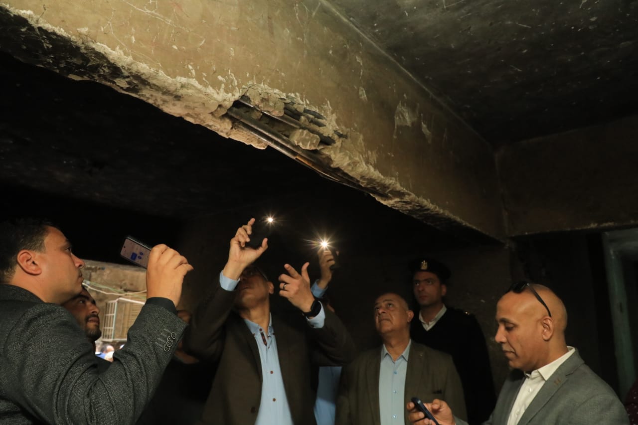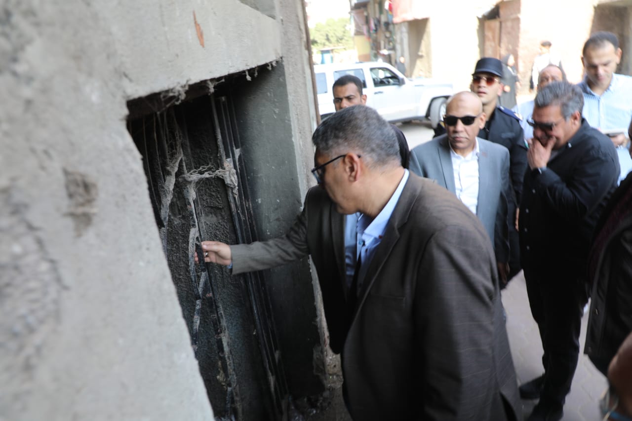 محافظ الجيزة يتفقد بلوكات أرض عزيز عزت ويتابع معالجة تسرب المياه بالبدرومات