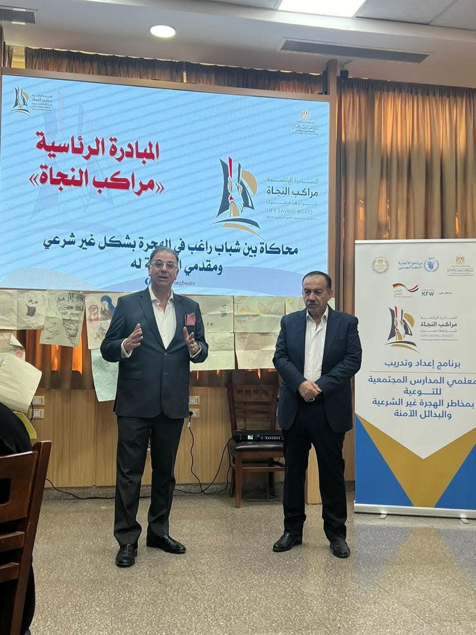 استكمالا لزيارة السفير نبيل حبشي نائب وزير الخارجية والهجرة وشئون المصريين في الخارج إلى محافظة أسيوط في إطار تنفيذ المبادرة الرئاسية "مراكب النجاة" التي تبتغي الحد من ظاهرة الهجرة غير الشرعية، قام نائب الوزير وبصحبة اللواء هشام أبو النصر محافظ أسيوط بحضور جانب من البرنامج التدريبي الذى تعقده وزارة الخارجية بالتعاون مع وزارة التربية والتعليم وبرنامج الأغذية العالمى لتدريب عدد من معلمى المدارس المجتمعية بهدف إعداد كوادر تقوم بالتوعية بمخاطر الهجرة غير الشرعية.