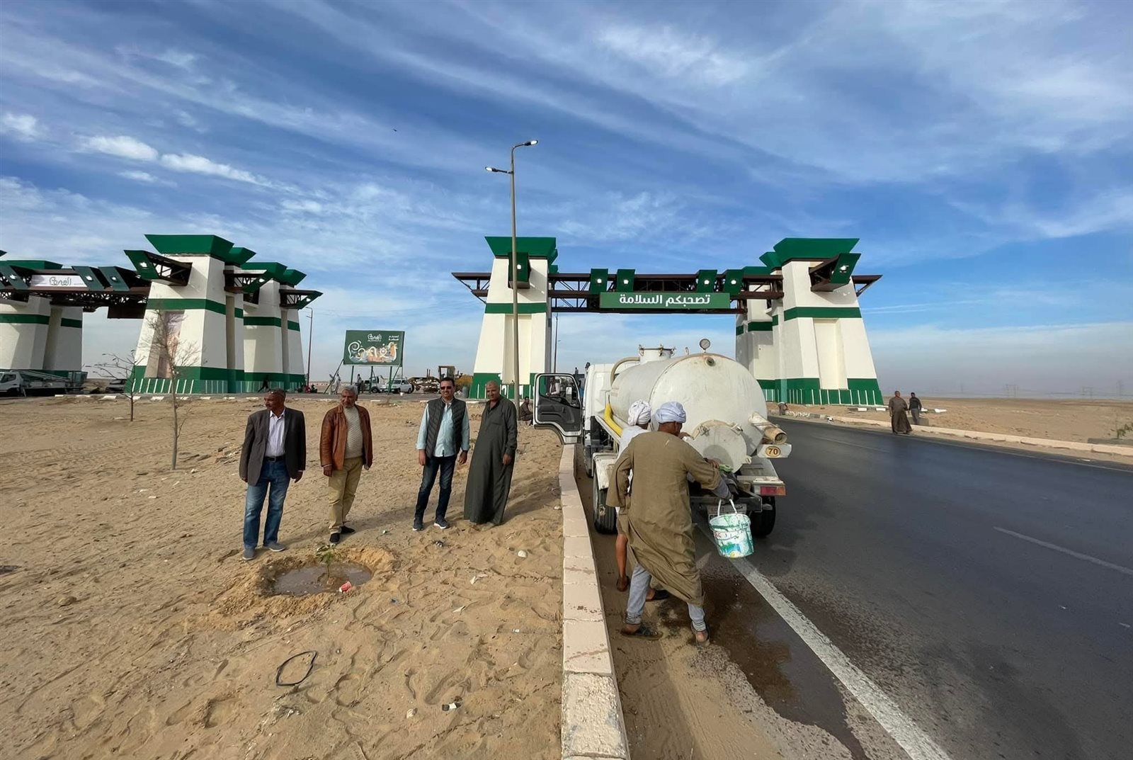 جاء ذلك خلال جولته التفقدية لسير العمل بالطريق، والتي تشمل رفع كفاءة البوابة الحدودية ورفع الإشغالات وزراعة الأشجار وإعادة دهان الأرصفة وأعمال النظافة والتجميل بالطريق.