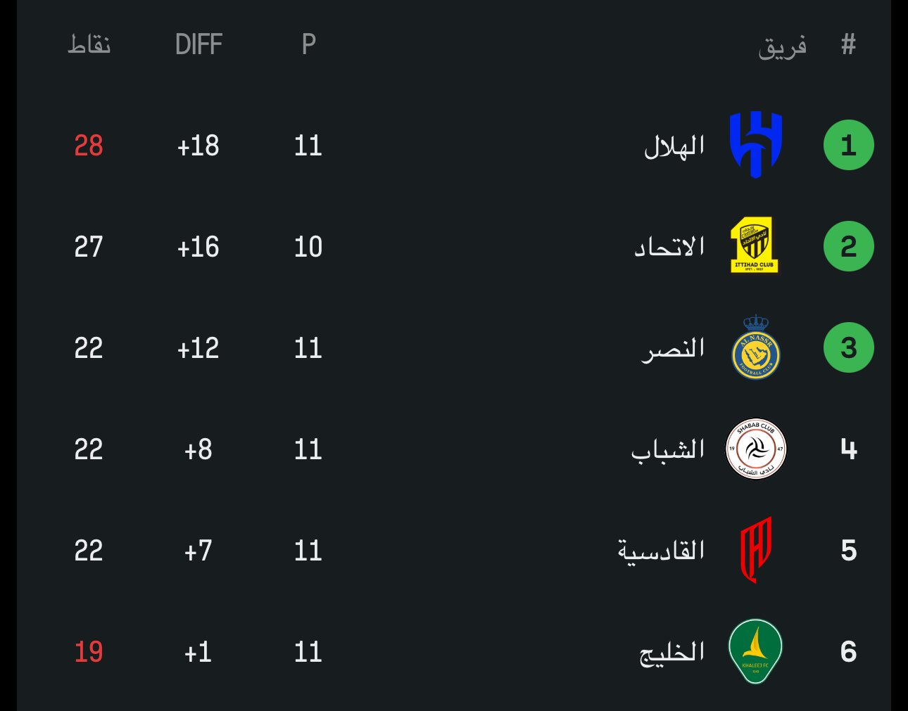 ترتيب الدوري بعد مباراة الهلال والخليج