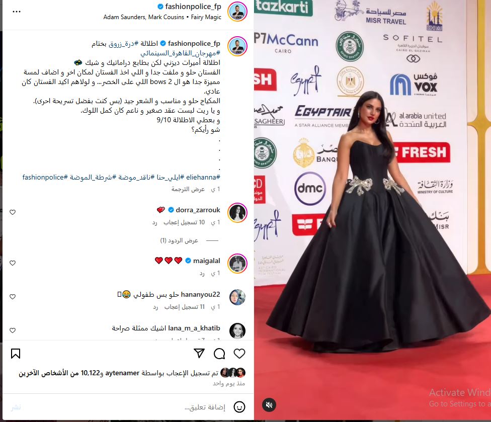 شرطة الموضة تغازل فستان درة زروق في حفل ختام مهرجان القاهرة السينمائي