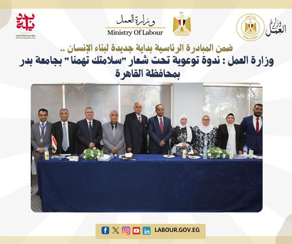 وزارة العمل تنظم ندوة توعوية تحت شعار "سلامتك تهمنا" بجامعة بدر