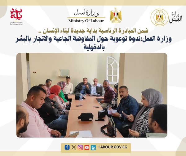 وزارة العمل تنظم ندوة حول المفاوضة الجماعية والاتجار بالبشر بالدقهلية