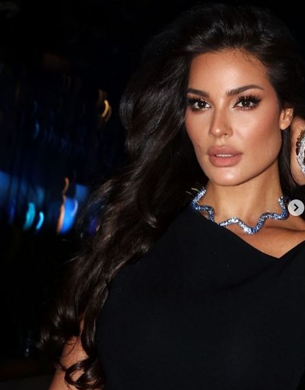 ومن الناحية الجمالية، فضلت ترك خصلات شعرها منسدلة على طريقة الويفي الواسع ووضعت مكياجًا ساحرًا مرتكزًا على الألوان الترابية مع تحديد ورسم عينيها بالكحل والماسكرا السوداء ولون النود في الشفاه.
