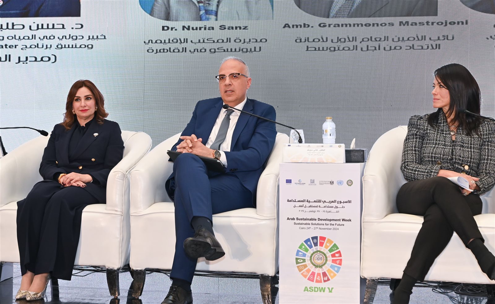 شارك الدكتور هانى سويلم وزير الموارد المائية والرى، في جلسة "تعزيز الحلول المتكاملة للمياه والطاقة والغذاء لتحقيق أهداف المناخ والتنمية المستدامة" ضمن فعاليات "الأسبوع العربي للتنمية المستدامة".