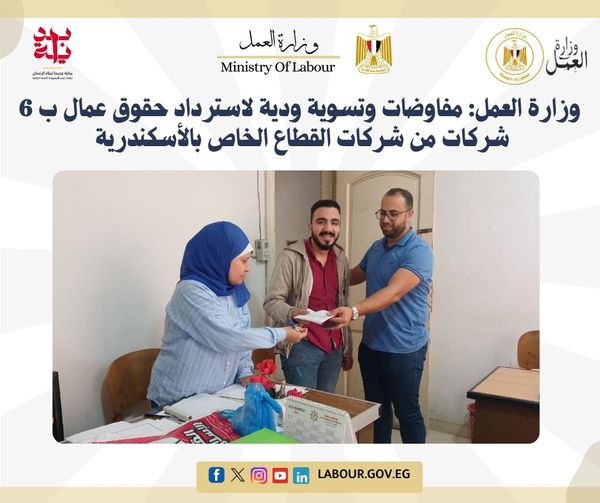 وزارة العمل تنجح بمفاوضات استرداد حقوق عمال بشركات القطاع الخاص بالإسكندرية