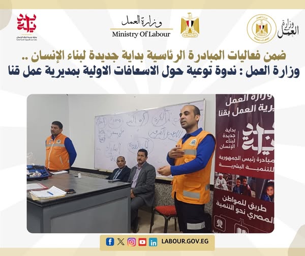 وزارة العمل تنظم ندوة حول الإسعافات الأولية في قنا