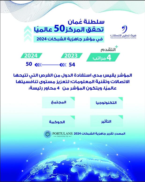 سلطنة عُمان تتقدم 4 مراتب في مؤشر جاهزية الشبكات وتحقق المركز 50 عالميًا