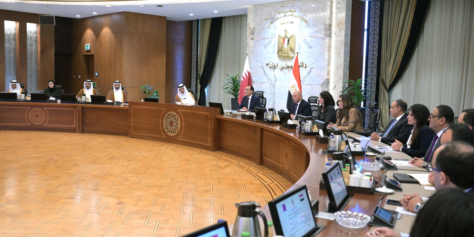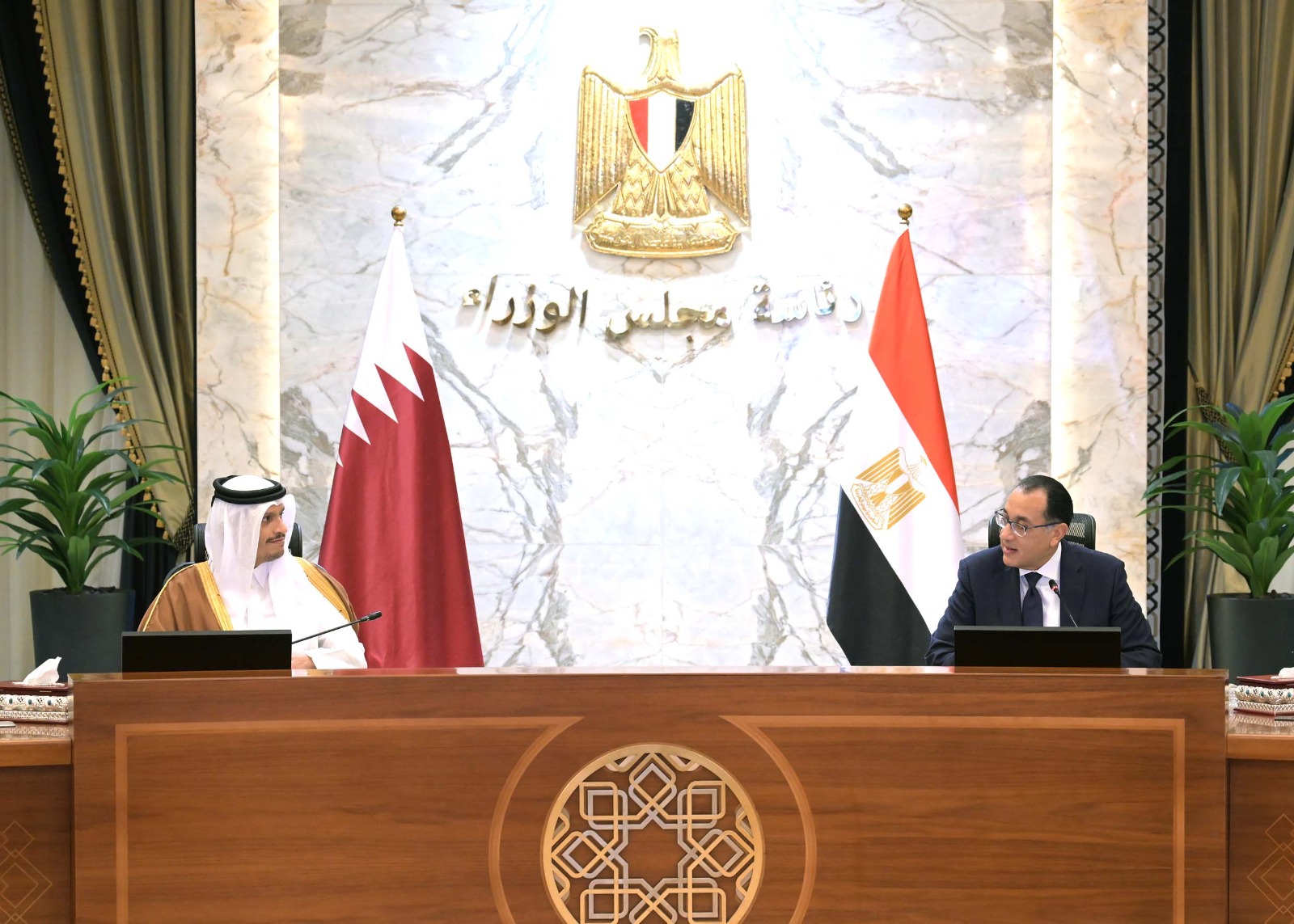 ترأس الدكتور مصطفى مدبولي، رئيس مجلس الوزراء، ومعالي الشيخ محمد بن عبد الرحمن بن جاسم آل ثاني، رئيس وزراء قطر، وزير الخارجية، اليوم بمقر مجلس الوزراء بالعاصمة الإدارية الجديدة، جلسة مباحثات مُوسّعة حول سبل دعم التعاون المشترك في مختلف المجالات.