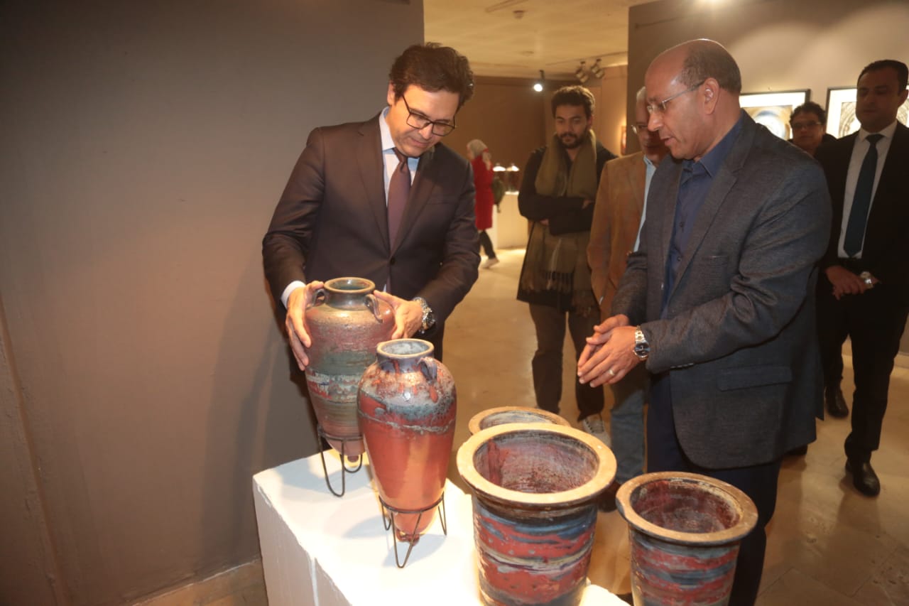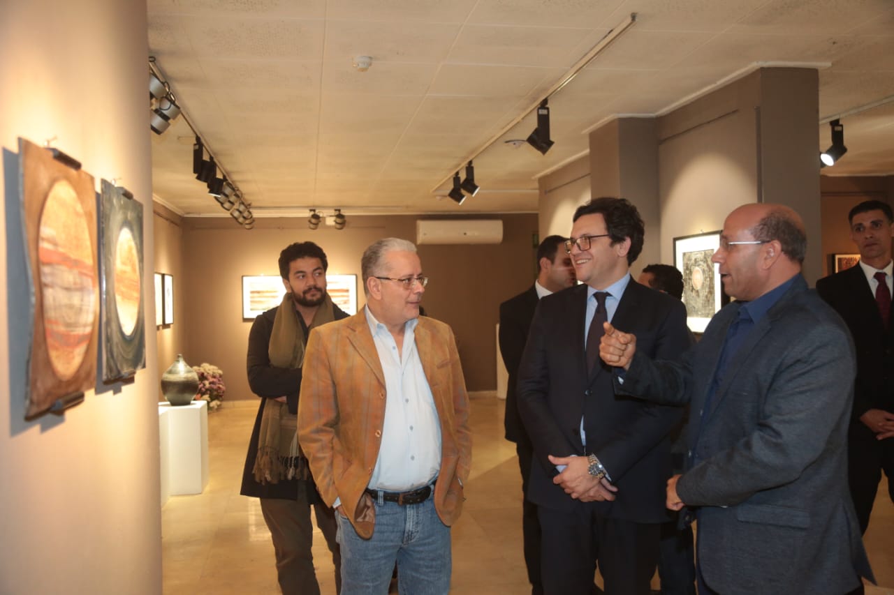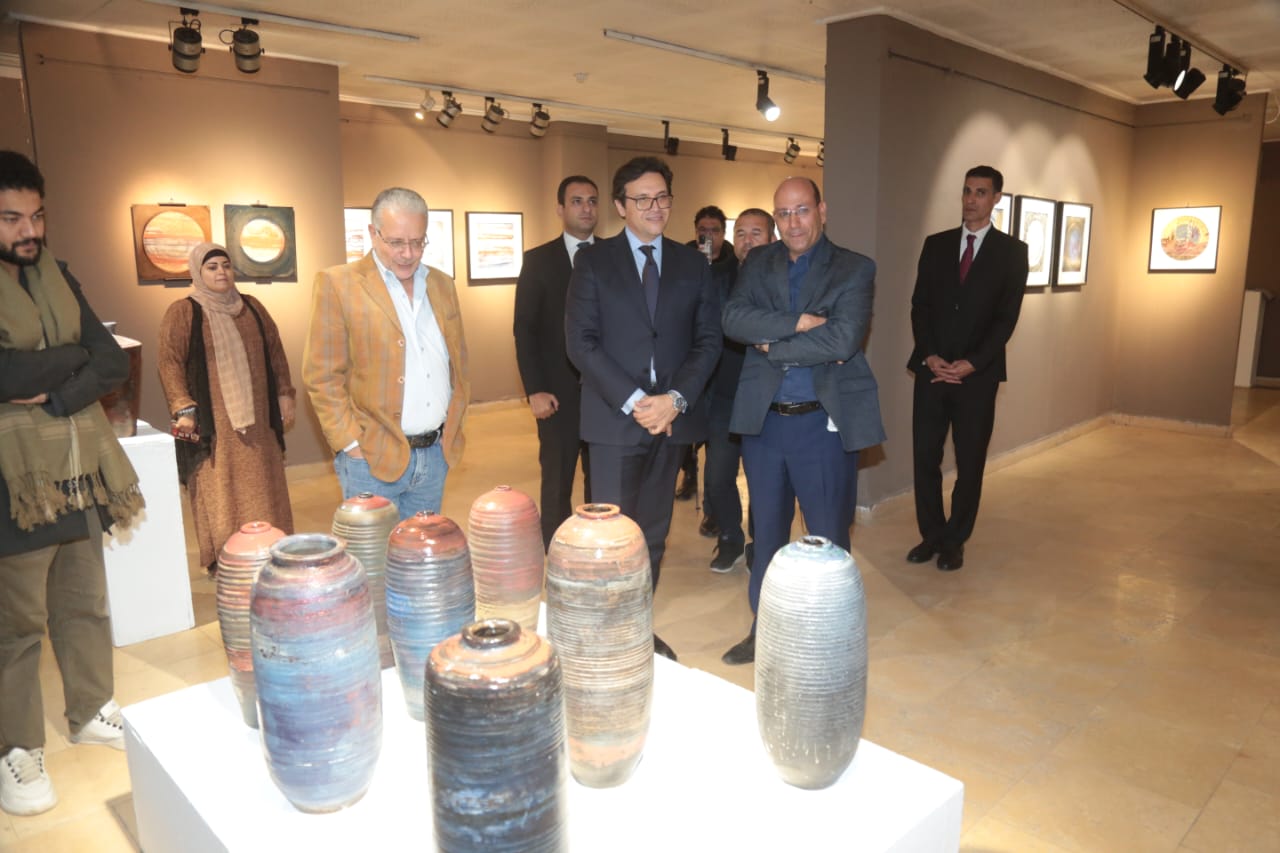 وزير الثقافة يتفقد معرض "ومضات خزفية" في قاعة الباب