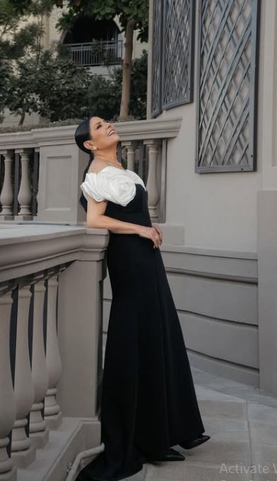 وتألقت صباح الجزائري بإطلالة ساحرة تمزج بين الرقي والأنوثة في آن واحد، بأسلوب مواكب لأحدث صيحات موضة فساتين خريف وشتاء 2025، حيث ارتدت فستانًا طويلًا مجسمًا، ينتمي لقصة الأوف شولدر، صمم من قماش الكريب مع الساتان باللونين الأبيض والأسود، عكس الفستان قوامها الشبابي الممشوق.