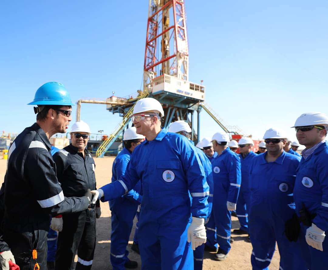 وخلال الجولة التقى بدوى بفريق العمل بمنطقة الحفر ، الذى اوضح أنه من المخطط وضع البئر على الإنتاج خلال اسبوعين بعد الانتهاء من أعمال الحفر بمعدل إنتاج حوالى 200 برميل يوميا ، كما استعرض الوزير مع فريق العمل الأفكار الجديدة والتقنيات الحديثة لتكثيف اعمال الحفر ، وعدد الحفارات اللازمة للعمل فى المنطقة مع مراعاة ترشيد الانفاق دون المساس بالعملية الإنتاجية ، وكذلك إدارة الخزانات البترولية بآلية تحقق الاستغلال الأمثل منها، لافتاً إلى ان الوزارة وهيئة البترول لا تتوانى فى تقديم الدعم اللازم لتحقيق ذلك ، موجهاً الشكر والتقدير لكافة العاملين فى الموقع ، وطالبهم مجدداً باتباع إجراءات السلامة والصحة المهنية للحفاظ على ارواحهم باعتبارهم الثروة الحقيقية للقطاع.