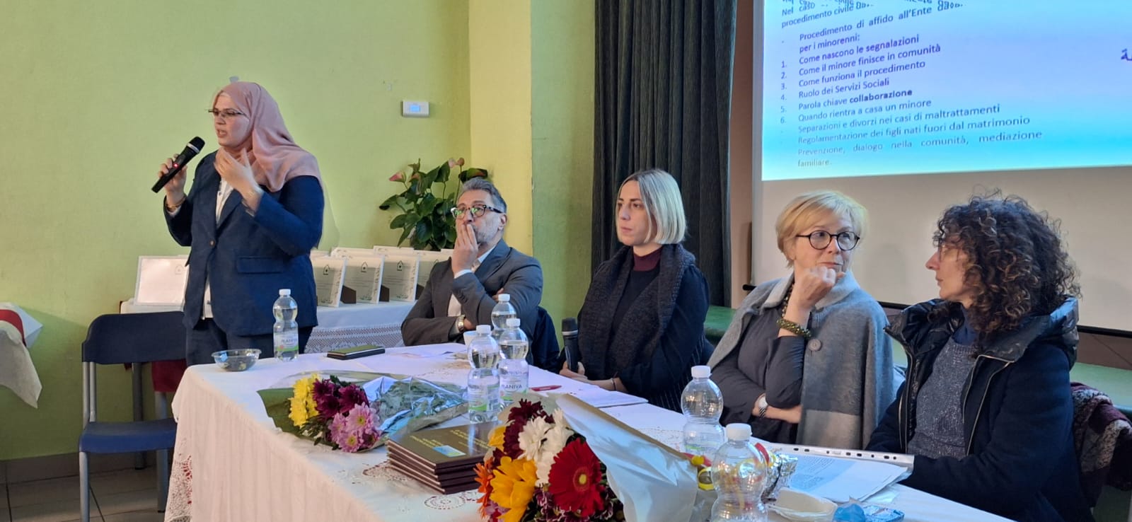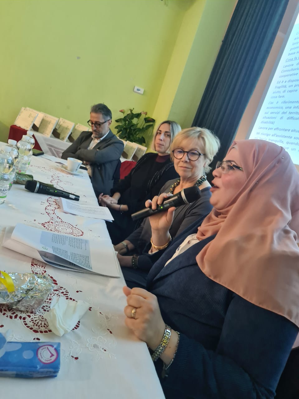 كما شهد الحفل حضور عدد من المحامين والمستشارين الاجتماعيين، كمتحدثين على المنصة مثل السيدة باتريسيا بيردرازيني، الأخصائية الإجتماعية في بلدية ريبالتا أربينا ، اليساندرو كاسالي، المحامي المدني وكلوري بريتي المحامي الجنائي والدكتورة نيكوليتا بيانشيسي مديرة المشروع العلاجي في زابيلو علاوة على السيد أحمد أبو صوان أحد مؤسسي الجمعية والناشط المصري بين الجاليات العربية بشمال إيطاليا.