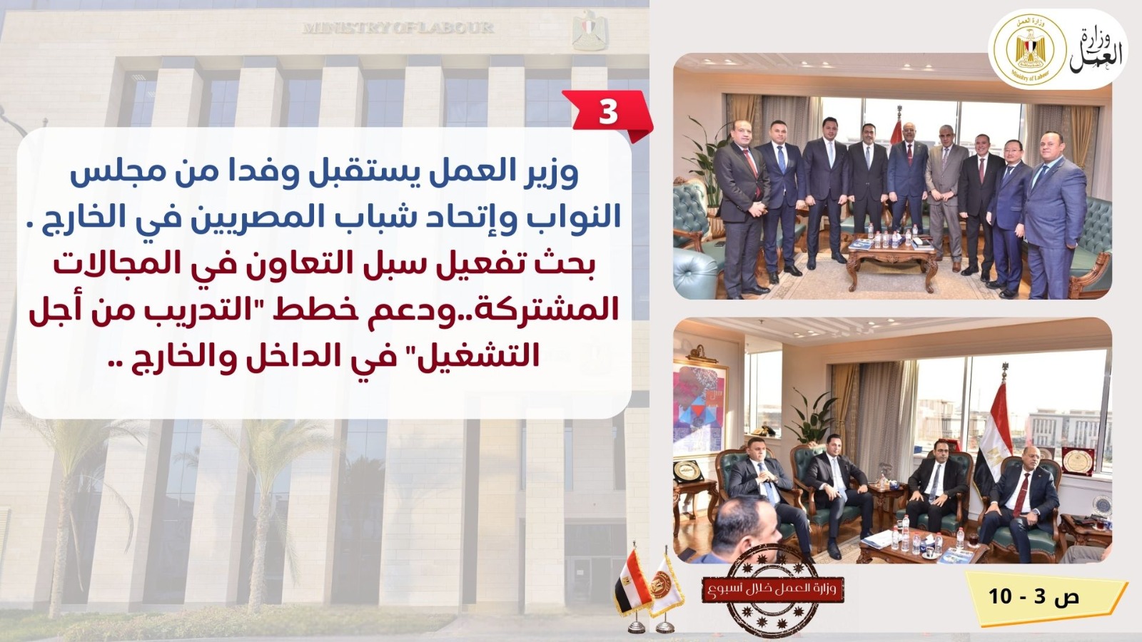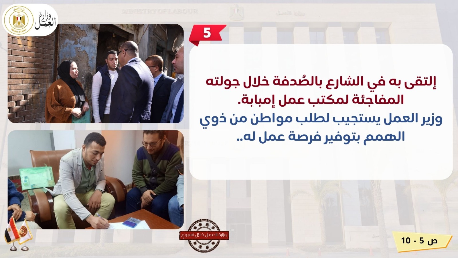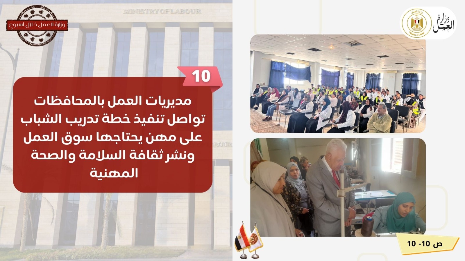 جولة بمواقع العاشر من رمضان ووظائف للشباب.. نشاط وزارة العمل في أسبوع