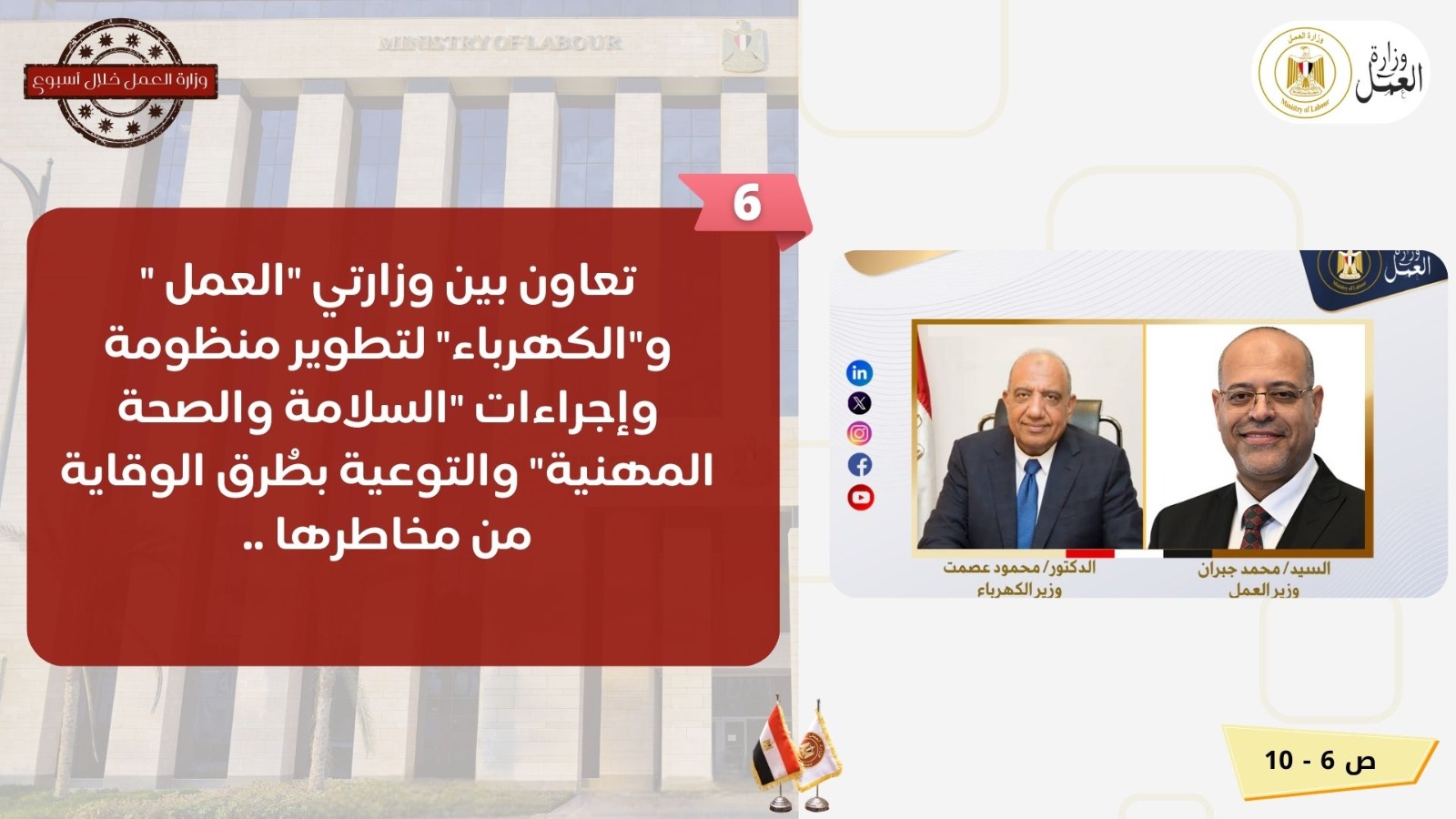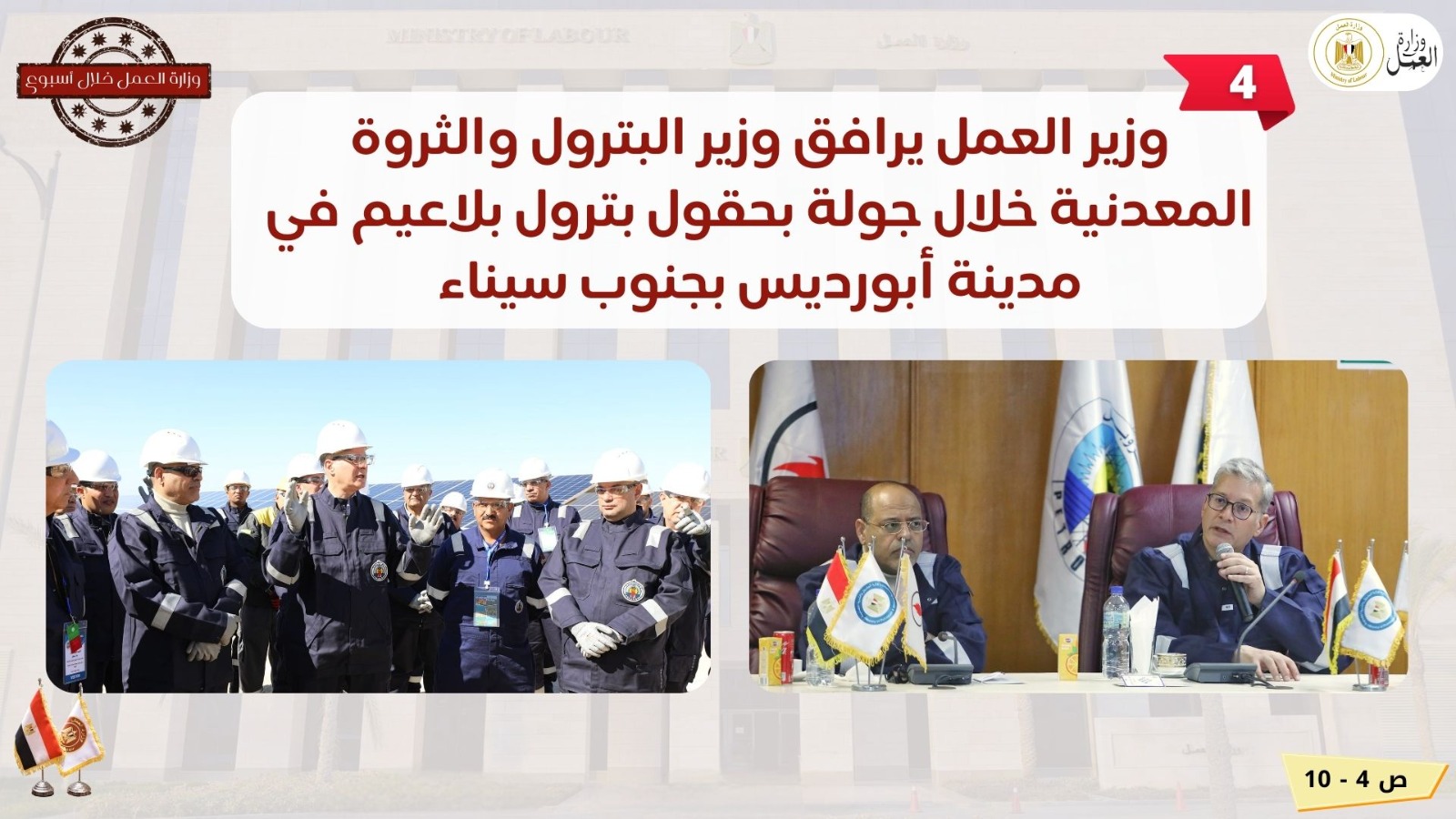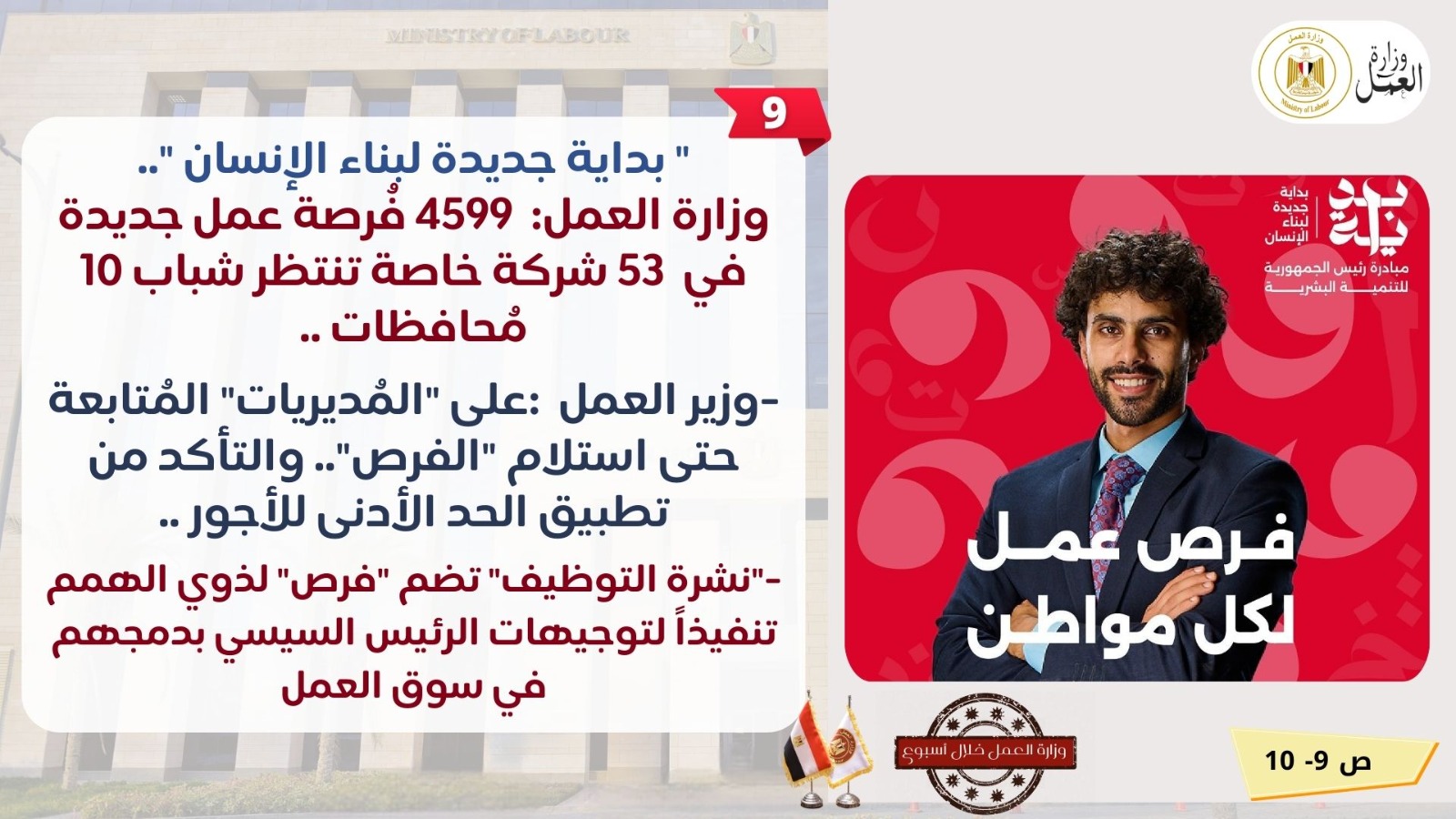 جولة بمواقع العاشر من رمضان ووظائف للشباب.. نشاط وزارة العمل في أسبوع