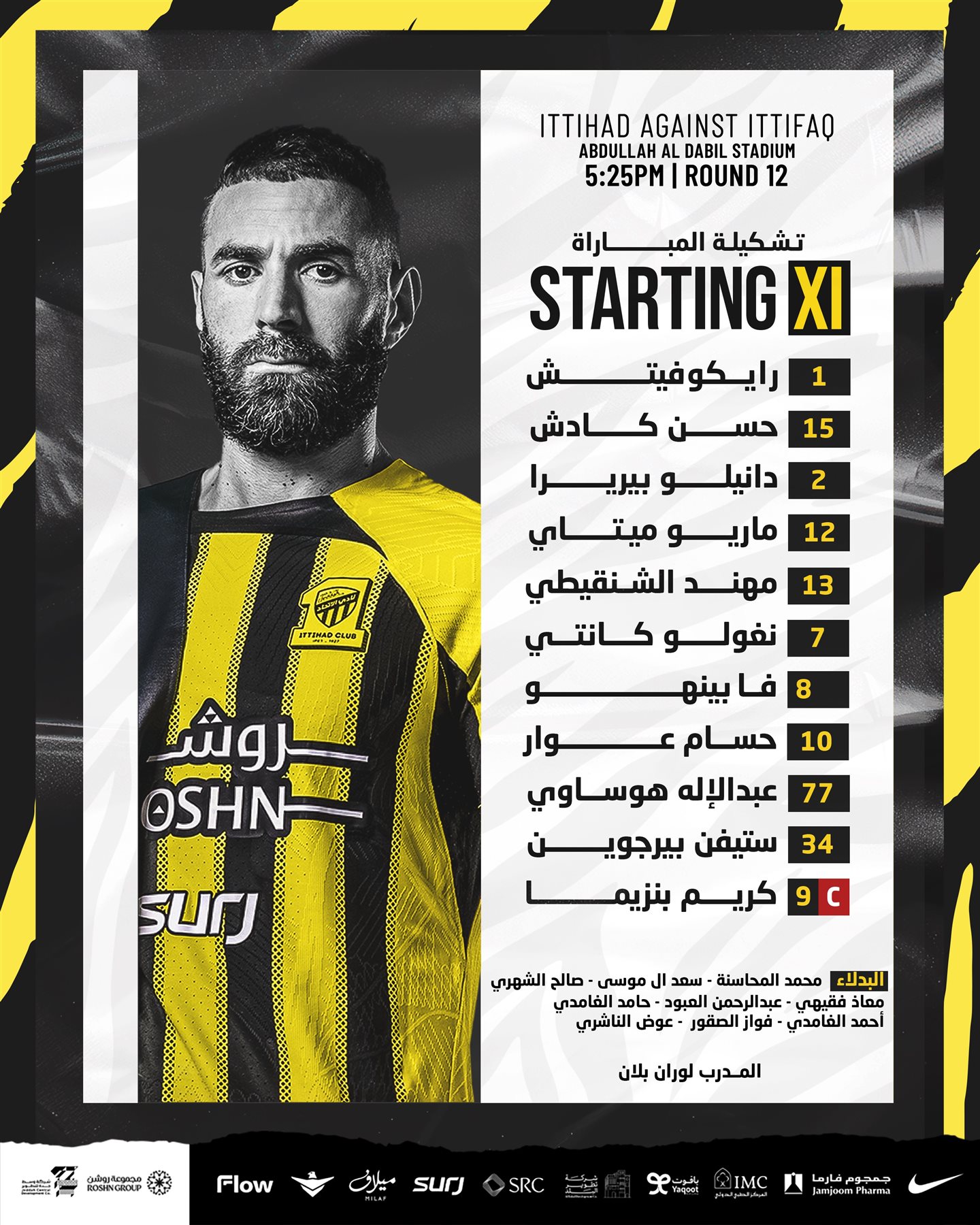 بنزيما على رأس تشكيل اتحاد جدة أمام الاتفاق