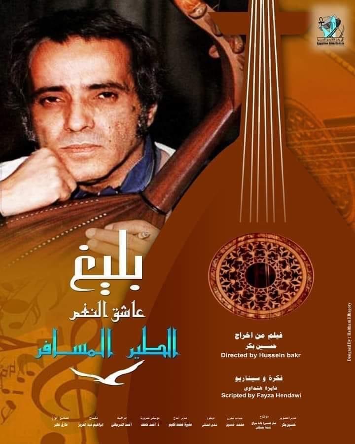 فيلم الطير المسافر "بليغ عاشق النغم"، من إنتاج المركز القومي للسينما وإخراج مدير التصوير د. حسين بكر وفكرة و سيناريو فايزة هنداوى، مونتاج كلاً من المونتيرة منار حسني وغادة سراج ونسمة مصطفى. أما تصميم المناظر، فقد صممه شادي العناني، فيما تولت منيرة محمد فهيم إدارة الإنتاج.