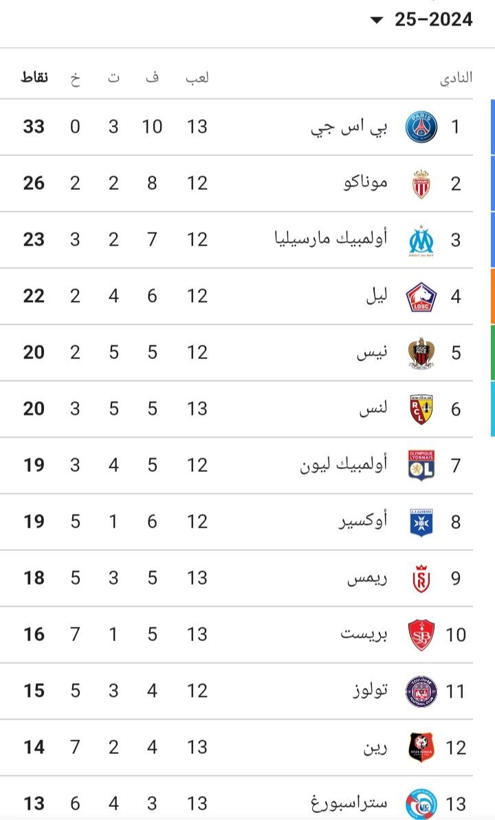ترتيب الدوري الفرنسي بعد تعادل باريس سان جيرمان ونانت