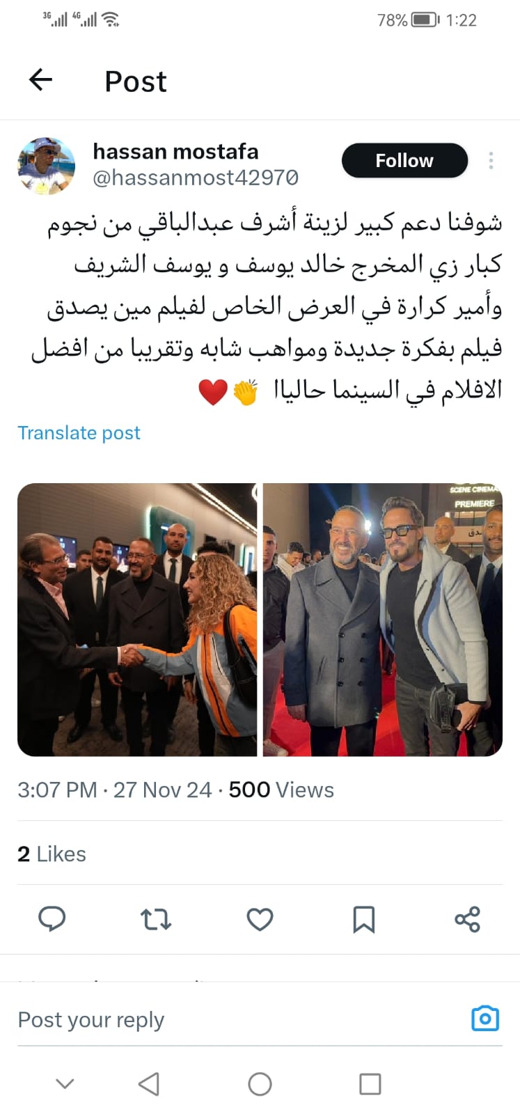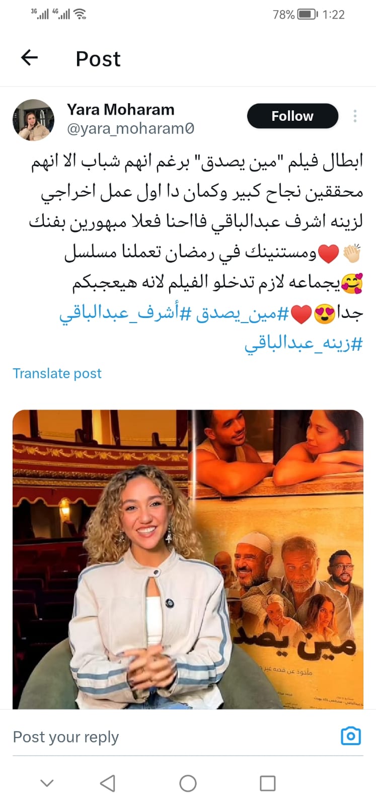 كما حظى الفيلم بإعجاب وتفاعل عدد كبير من رواد مواقع التواصل الاجتماعي بمنصاته المختلفة والذين أبدوا إعجابهم بفكرة الفيلم، كما أشادوا بمخرجته زينة عبد الباقي في أولى تجاربها السينمائية الطويلة.
