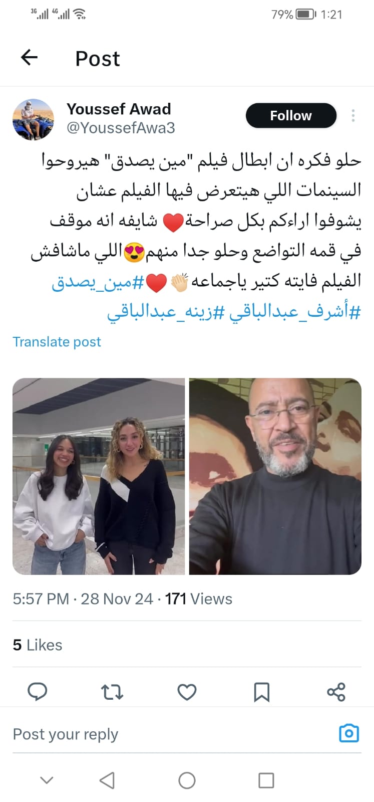 جدير بالذكر أن فريق عمل فيلم «مين يصدق»، في مقدمتهم النجم الكبير أشرف عبد الباقي وبطلي العمل الفنان يوسف عمر والفنانة جيدا منصور والمخرجة زينة عبد الباقي، قاموا بعدد من الجوالات بدور العرض السينمائية خلال الثلاثة أيام الماضية لمشاهدة الفيلم مع الجمهور ومتابعة ردود أفعالهم عليه.