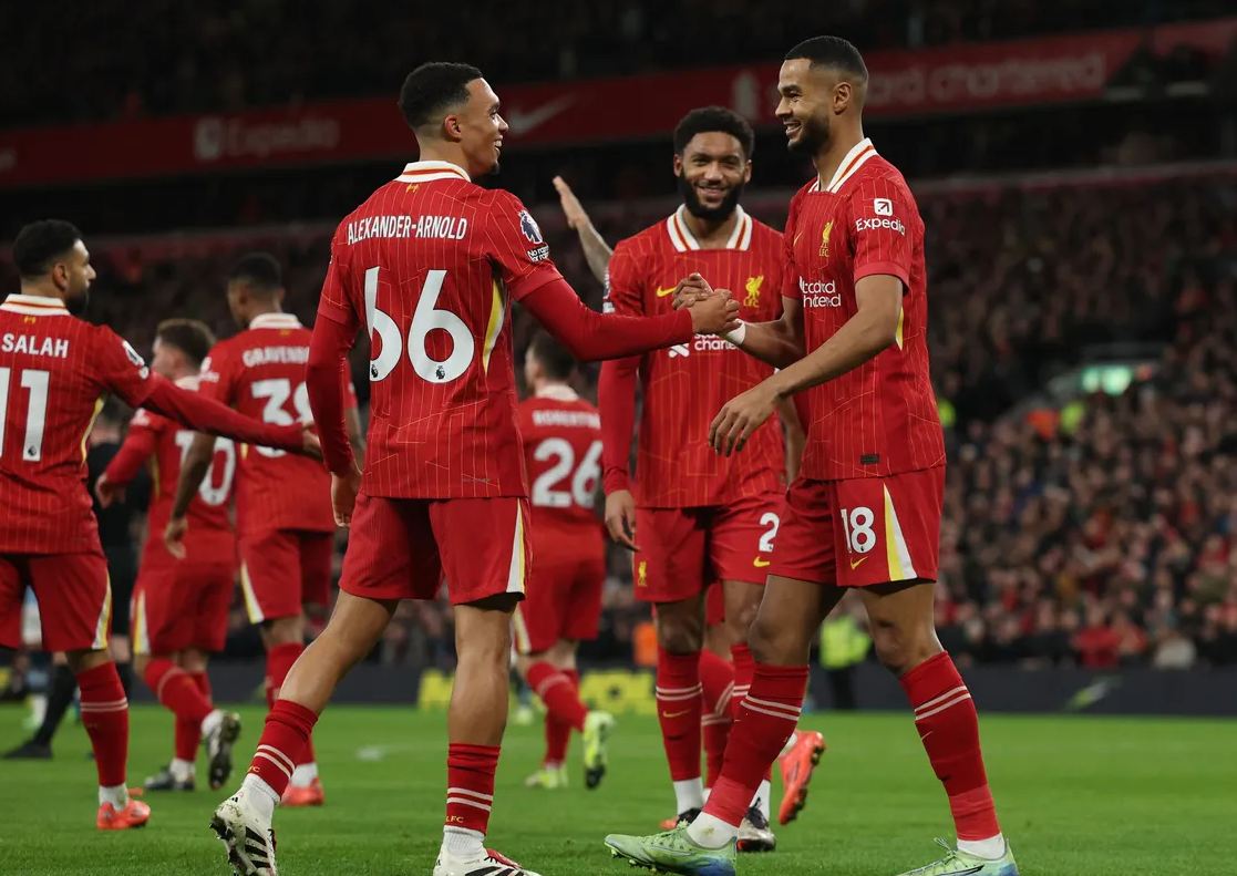 وجاء الهدف الأول، بعد تمريرة رائعة من محمد صلاح، الذي استلم الكرة على يسار منطقة الجزاء، ومر بها بمهارة قبل أن يرسلها إلى كودي جاكبو، الذي سددها بدوره داخل الشباك ليضع ليفربول في المقدمة في الشوط الأول.