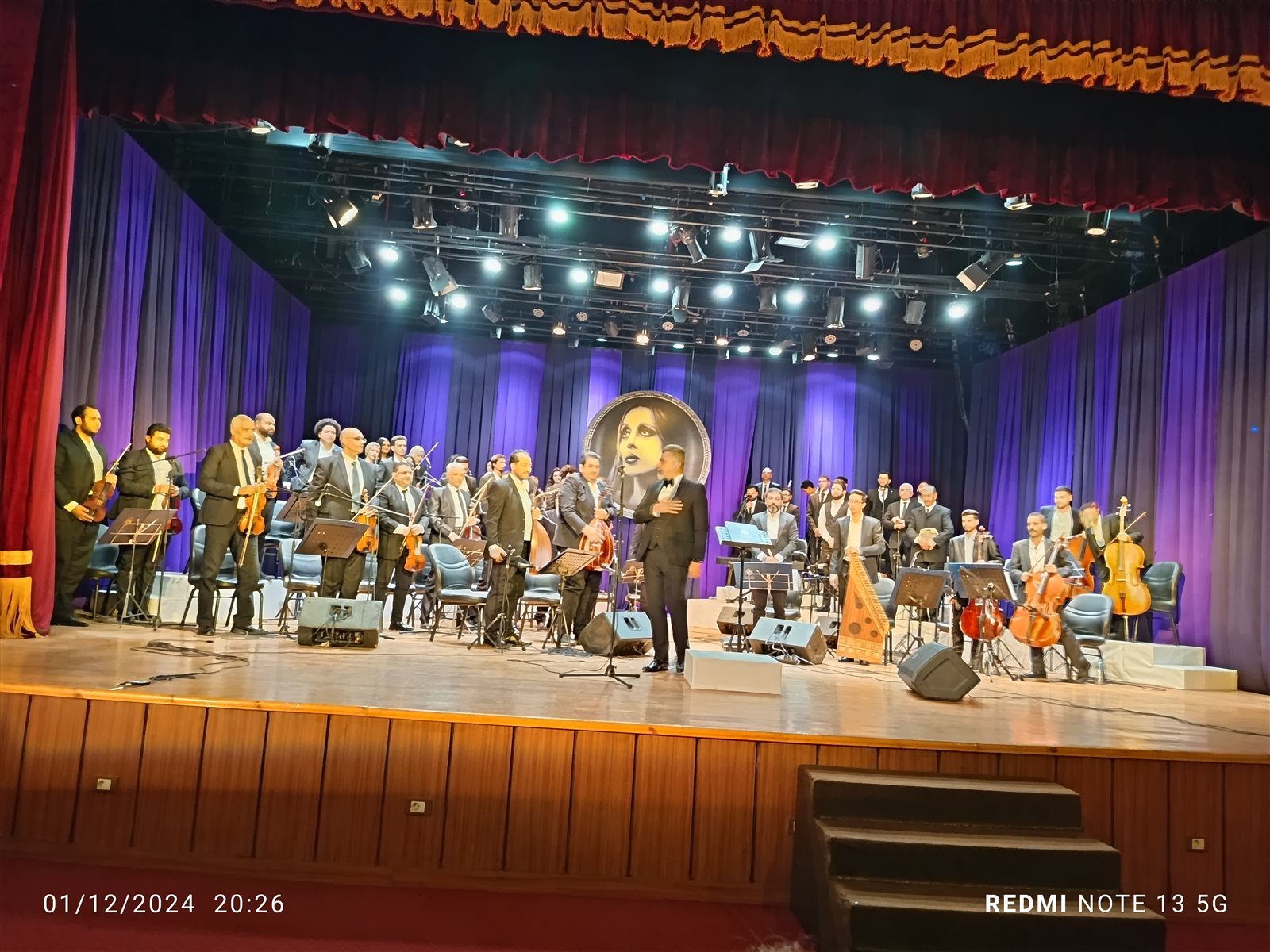 بدأت الحفل بالسلام الوطني ثم شدت الفرقة المصرية للموسيقى والغناء بقيادة المايسترو د. مازن دراز، بأولى الاغاني هى نسم علينا الهوى..