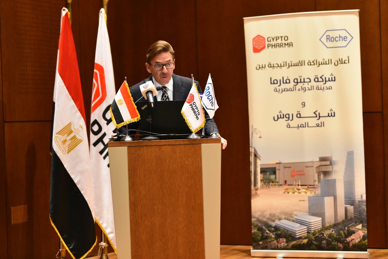 وفي كلمته، قال الدكتور محمد سويلم المدير العام لشركة روش فارما في مصر: «سعت شركة روش على مدى 40 عامًا من العمل في مصر، إلى العمل الدؤوب مع الحكومة ووزارة الصحة والسكان وكل القطاع الصحي، لتطوير الحلول الطبية المتقدمة، وتسعى جاهدة لتحسين جودة الحياة المواطنين في مصر والوطن العربي.. لذا نحن فخورون جداً بتعاوننا في الفترة السابقة مع جيبتو فارما في نقل التكنولوجيا والمهارات الخاصة بتصنيع المستحضرات الحيوية ذات الصفات التقنية والهندسية الطبية المعقدة إلى خبراء الدواء المصريين في مدينة الدواء المصرية، وهذه الشراكة الاستراتيجية تعد بداية لعلاقة طويلة الأمد، لتغطية عدد كبير من الأمراض المستعصية، وهي الخطوة الأولى من نوعها في مصر والمنطقة بالكامل».
