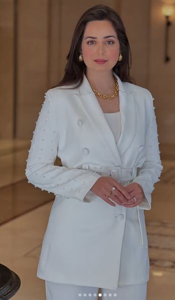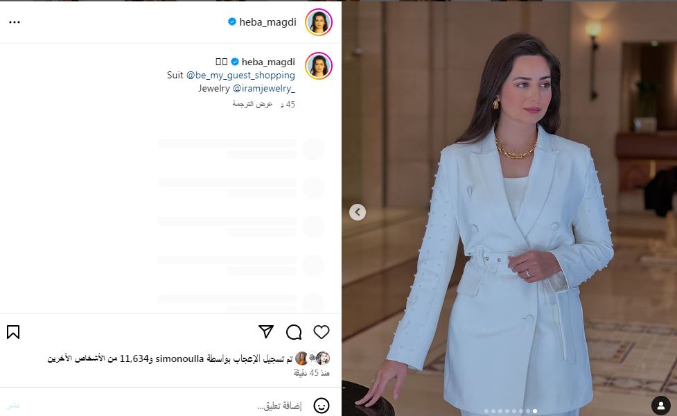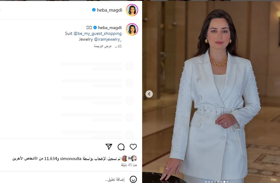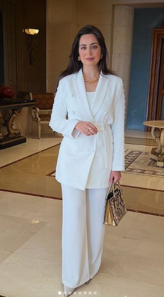 وتألقت هبة مجدي في أحدث ظهور لها بإطلالة ساحرة، تمزج بين الرقي والاحتشام بتوقيع أحدث صيحات الموضة 2025، حيث ارتدت بدلة نسائية بسيطة التصميم، صممت من قماش الكريب باللون الأبيض لتشبه الملاك، زينت البدلة ببعض حبات اللؤلؤ الناعمة، ونسقت معها كلاتش مصممه من الجلد بنقشة التايجر.