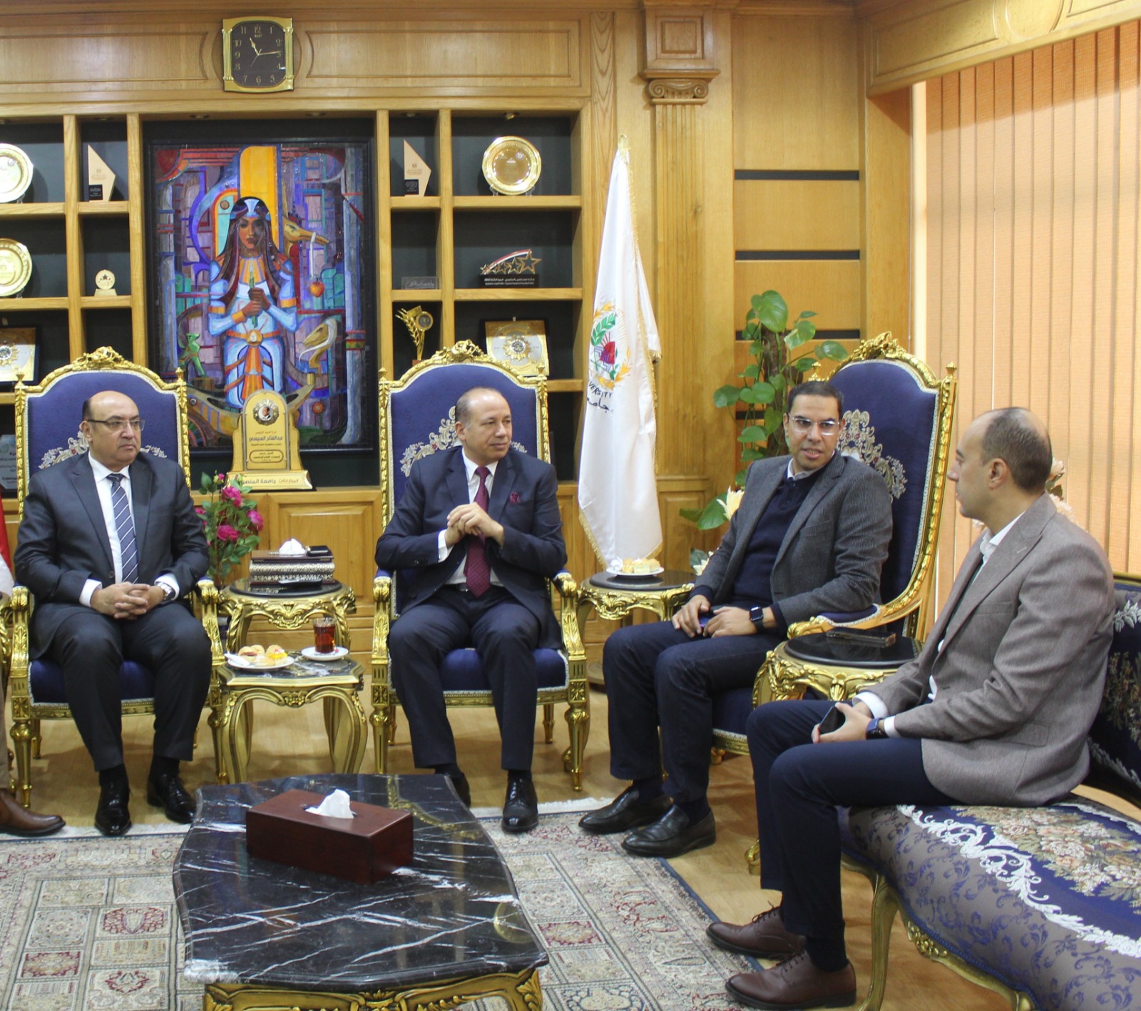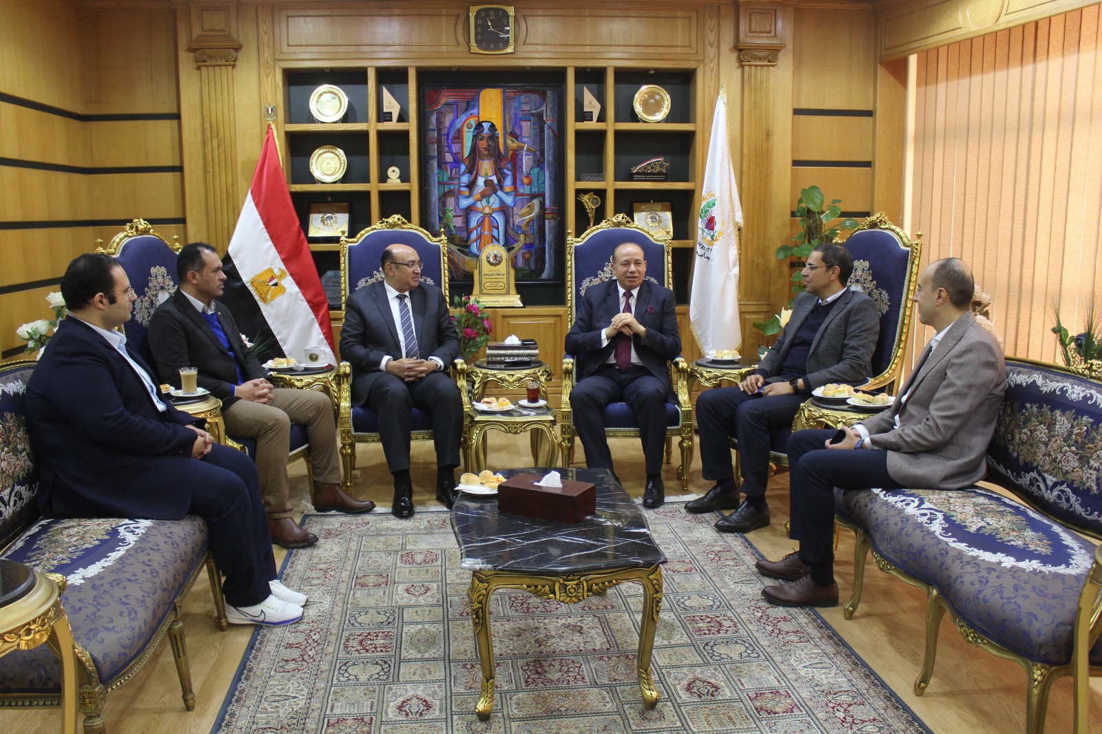 استقبل  الدكتور شريف يوسف خاطر رئيس جامعة المنصورة، اليوم الأثنين إيهاب عبد الله مدير برنامج المنح الجامعية المقدمة من الوكالة الأمريكية للتنمية الدولية بالجامعة الأمريكية بالقاهرة، والوفد المرافق له.