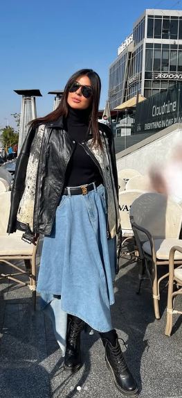 وبدت نورهان منصور بإطلالة شتوية، مفعمة بالاحتشام، حيث ارتدت هاي كول صمم من خيوط الصوف وعليه جيبة جينز فضفاضة، وعليهم جاكيت جلد، فيما انتعلت هاف بوت ينتمى للوك الرجالي.