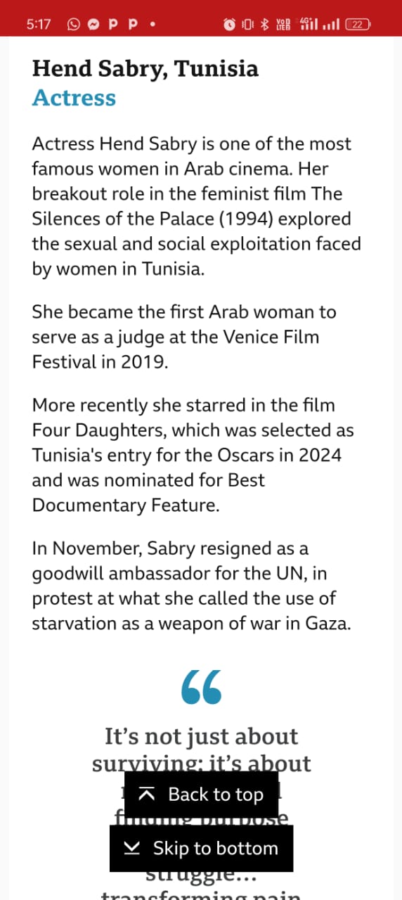 هند صبري ضمن قائمة أكثر 100 امرأة مؤثرة عبر العالم 2024