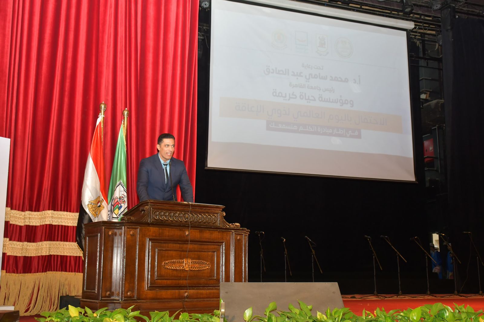 نظمت جامعة القاهرة احتفالية كبرى بمناسبة اليوم العالمي لذوي الإعاقة، بالتعاون مع مؤسسة حياة كريمة، في إطار مبادرة "اتكلم هنسمعك" بقاعة الاحتفالات الكبرى بالجامعة.