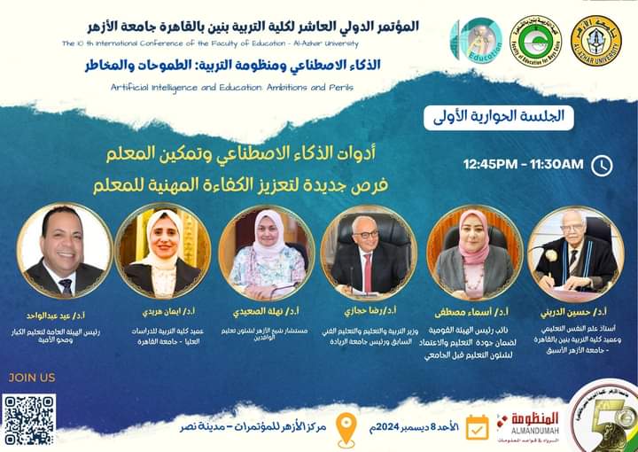 تستعد كلية التربية بنين بجامعة الأزهر لإطلاق فعاليات المؤتمر الدولي العاشر تحت عنوان "الذكاء الاصطناعي ومنظومة التربية.. الطموحات والمخاطر"، وذلك يومي 8 و9 ديسمبر 2024 بمركز الأزهر للمؤتمرات بمدينة نصر.