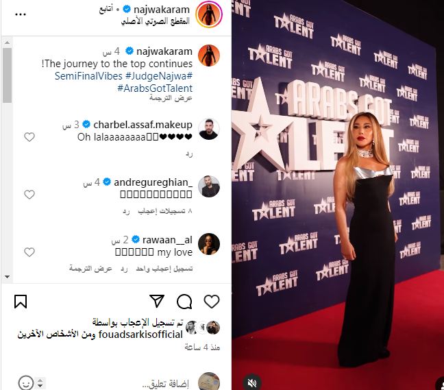 في عام 2011 شاركت نجوى كرم في برنامج أرابز غوت تالنت كأحد أعضاء لجنة التحكيم، وتوالى ظهورها منذ ذلك الحين في جميع المواسم الستة للبرنامج. في عام 2017 صنفت مجلة فوربس الشرق الأوسط نجوى كرم في المرتبة الخامسة على قائمة أفضل 100 شخصية عربية مع أكثر من 26 مليون متابع على وسائل التواصل الاجتماعي. في عام 2018 أدرجت مجلة كوزموبوليتان نجوى كرم في قائمتها لأكثر 15 امرأة إلهامًا في الشرق الأوسط، كما حلت في المركز الحادي عشر في القائمة التي نشرتها مجلة فوربس في عام 2018 لأفضل 10 نجمات عربيات على المسرح العالمي.