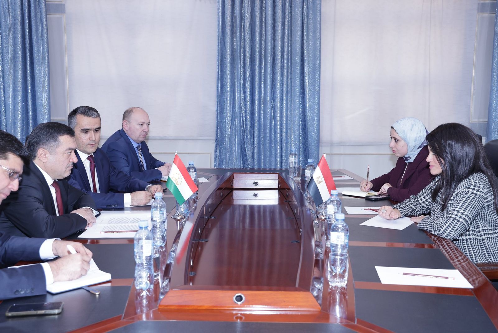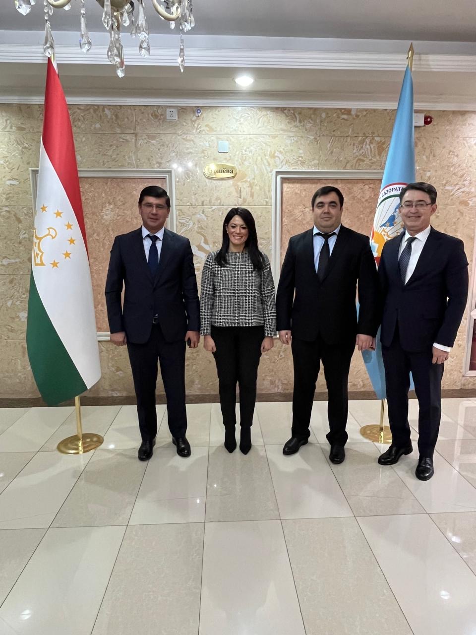 كما التقت وزيرة التخطيط والتنمية الاقتصادية والتعاون الدولي، نائب وزير الصناعة الطاجيكي، حيث ناقش الجانبان فُرص التعاون المتاحة في مجال التنمية الصناعية في ضوء الإمكانيات التي تمتلكها البلدان، حيث تم التأكيد على أهمية زيادة العمل المُشترك في مجال الصناعات الدوائية والتعدينية والإنشاءات وغيرها، وأشاد الجانب الطاجيكي بجهود مصر في التوسع في مجال الطاقة المتجددة سواء على مستوى الطاقة الشمسية أو الرياح، وكذلك الهيدروجين الأخضر.