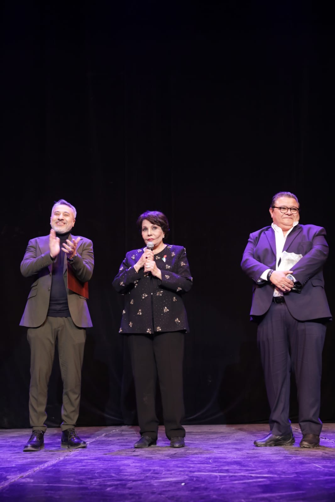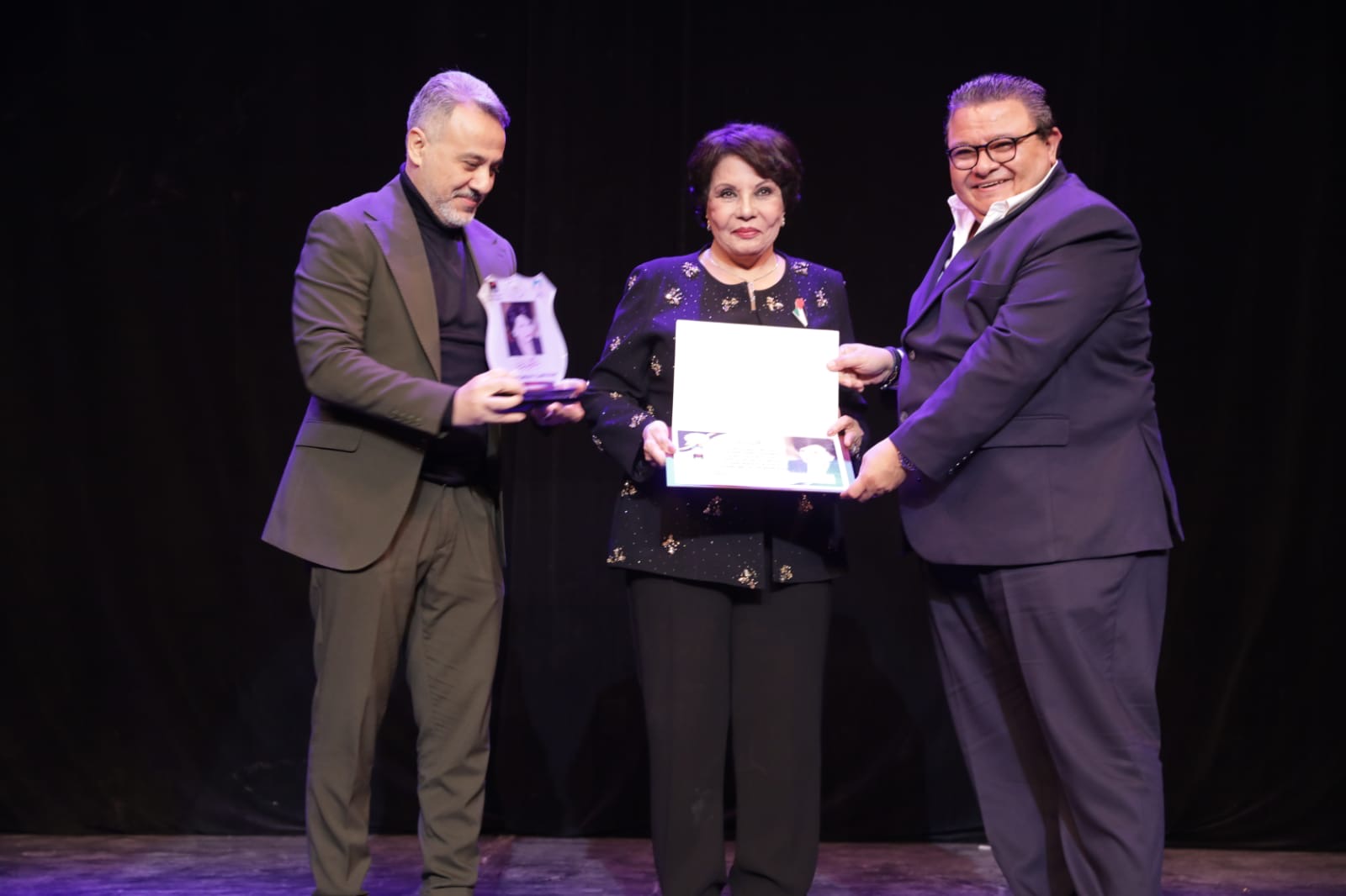 وفي نهاية الحفل أهدى المخرج الكبير جلال- رئيس قطاع شئون الإنتاج الثقافي، والفنان إيهاب فهمي- مدير عام المركز القومي للمسرح والموسيقى والفنون الشعبية، درع تذكاري وشهادة تقدير للفنانة القديرة فردوس عبد الحميد؛ تقديرا لرحلة عطائها الفنية.
