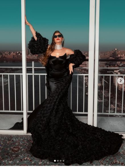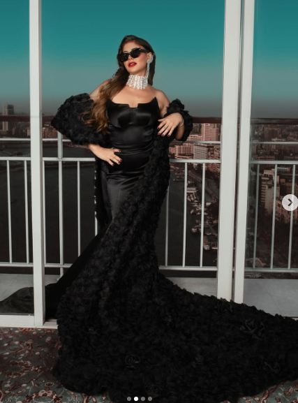 واختارت ترك خصلات شعرها منسدلة بحرية وراء ظهرها ووضعت مكياجًا صاخبًا مرتكزًا على ألوان النود لتحديد ملامحها بشكل قوي وجذاب مع لون الأحمر الصارخ في الشفاه.