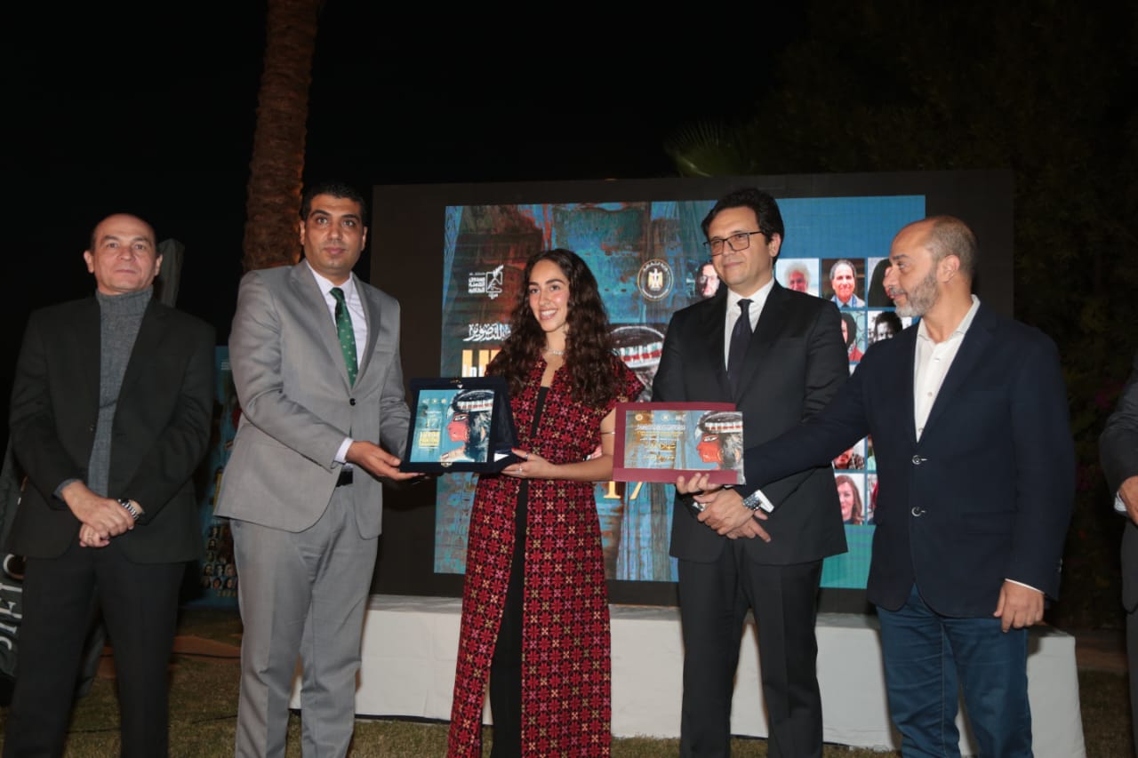 عقب ذلك حرص وزير الثقافة على تكريم أعضاء اللجنة العليا للملتقى، وتكريم الفنانة التشكيلية إيفيلين عشم الله، تقديرًا لمسيرتها الفنية المتميزة، والناقد الفني د. أحمد سميح.