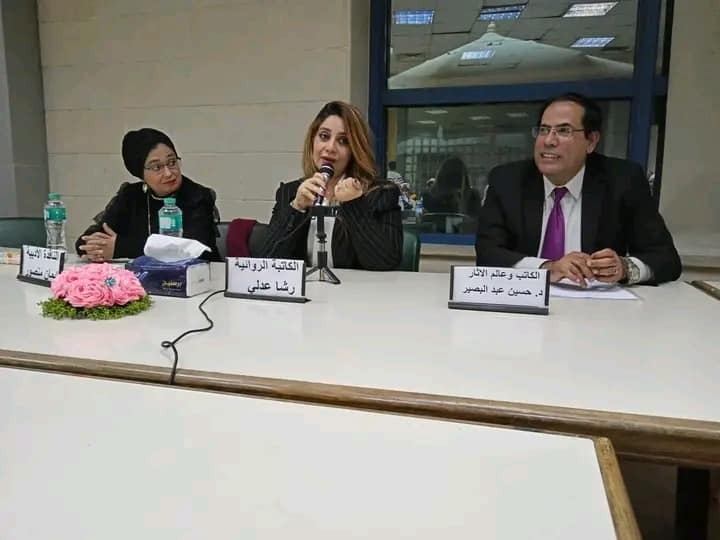 ومن جانبها، تحدثت رشا عدلي عن روايتها واهتمامها بدراسة الفن والتاريخ كما أشارت إلى الإلهام الذي دعاها إلى كتابة عمل أدبي مستوحى من وجوه الفيوم البديعة.
