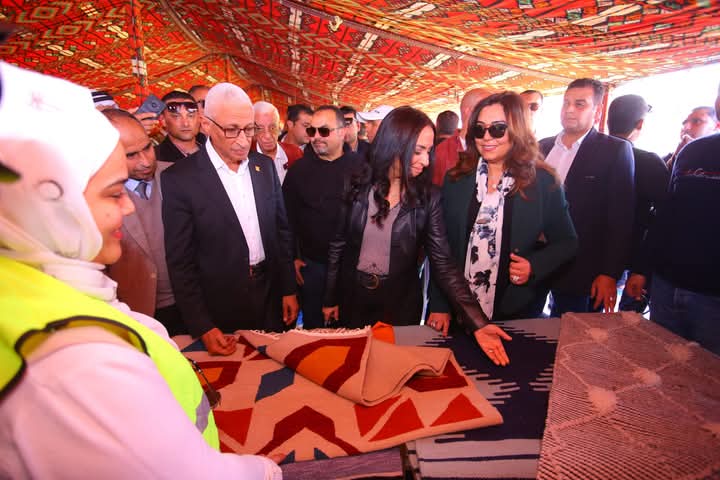 كما تفقدت الوزيرتان ومحافظ  شمال سيناء منتجات مشروع تعزيز التنمية المستدامة في المحافظة والتي تنفذه جمعية تنمية المجتمع المحلي بالجورة، حيث تقوم عليه 20 سيدة من سيدات المحافظة الأولى بالرعاية بإنتاج الكليم.